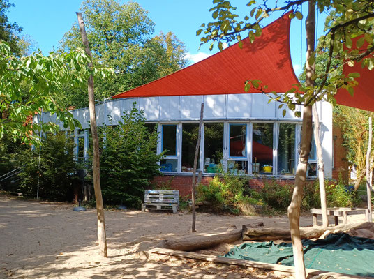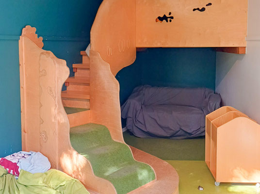 Unser Pilzhäuschen steht wie ein Zauberhäuschen am Waldrand. Wer hineinschaut, entdeckt nicht nur Räume, sondern Möglichkeiten: für Rückzug, für Rollenspiel, für leise Träume. Die Sandflächen
